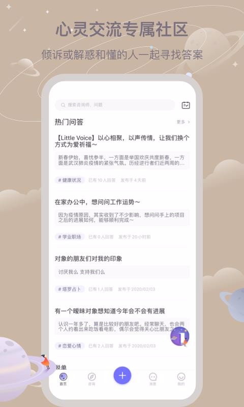 1.这里就是一个心灵交流的专属社区,可以用来倾诉心声也可以和懂你的人寻找答案;