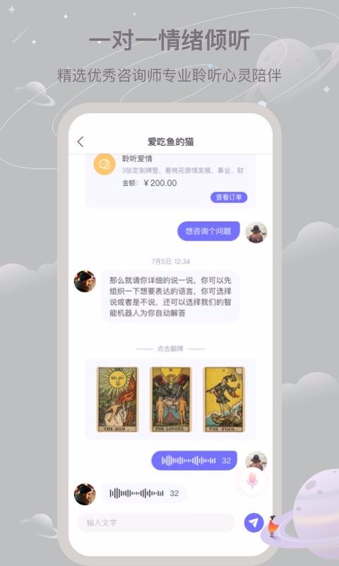 2.提供了聊天窗口,可以与精选优秀咨询师进行一对一聊天,一对一情绪倾诉;