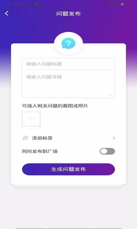 2、在发布问题的时候,支持添加问题标签,也可以将问题同时发布到广场中心;