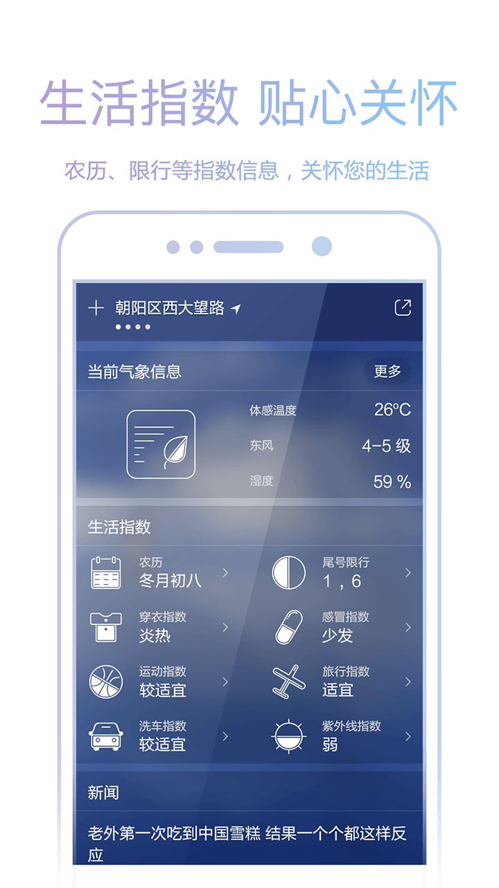 3. 丰富气象指数:除了基本的温度、湿度、风力等天气信息外,还提供空气质量、紫外线强度、穿衣指数、运动指数等丰富多样的气象指数,满足用户在不同场景下的需求。