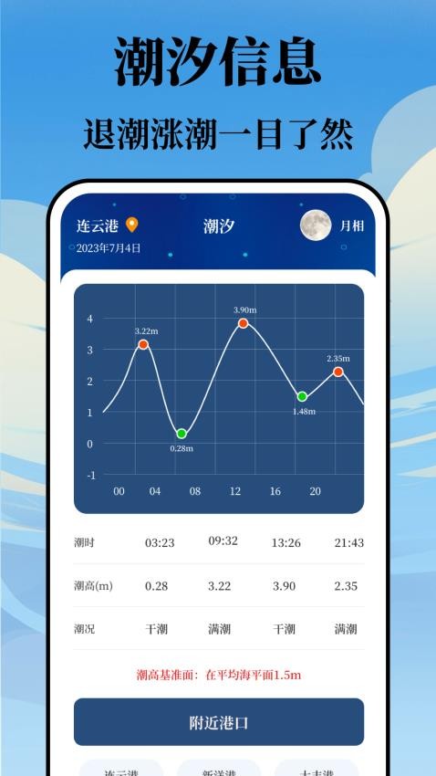 利用自动定位功能获取附近港口未来24小时潮汐预报,结合月相变化预测鱼类活动高峰期,科学规划赶海或钓鱼时段。
