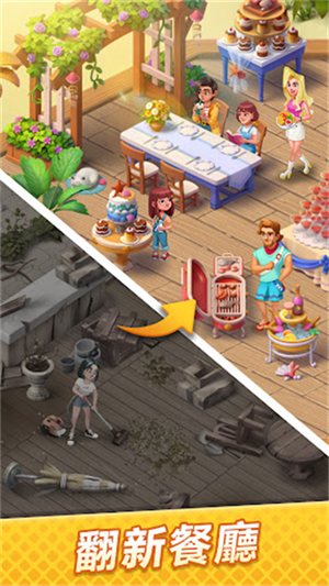 自由选择地板、壁纸、家具等元素,打造简约风、时尚风或中式风餐厅。装修影响顾客满意度,进而提升餐厅评级与收入。