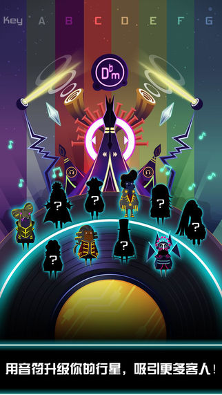 画面与音效:竖版2D科幻画风搭配动态背景,音符与光效随曲风实时变化,营造沉浸式音乐氛围。官方合作独立音乐人的原创BGM质量上乘,节奏感强烈。