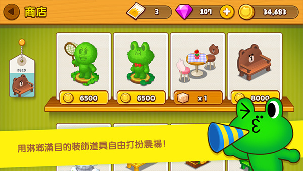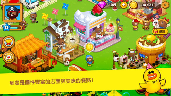 布朗熊、可妮兔等LINE家族角色不仅是游戏NPC,更会主动向玩家发布任务(如“帮助可妮兔种植草莓田”),完成任务可获得专属奖励。角色还会定期造访农场,触发互动剧情,增强沉浸感。