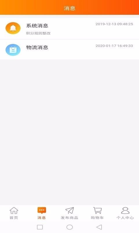 5.成功下单购买产品,进入消息通知页面查看物流消息