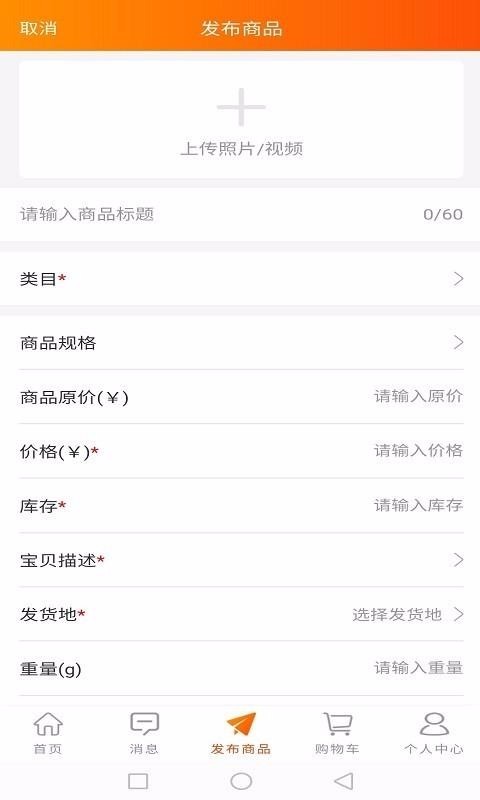 1.进入软件的商品发布页面,根据需求填写商品信息