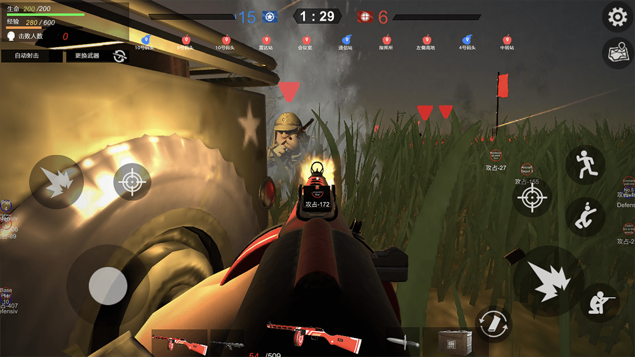 参与团队竞技时,需根据敌方阵容调整战术:面对狙击手时利用烟雾弹掩护推进,遭遇重装甲敌人时切换火箭筒或集火攻击。