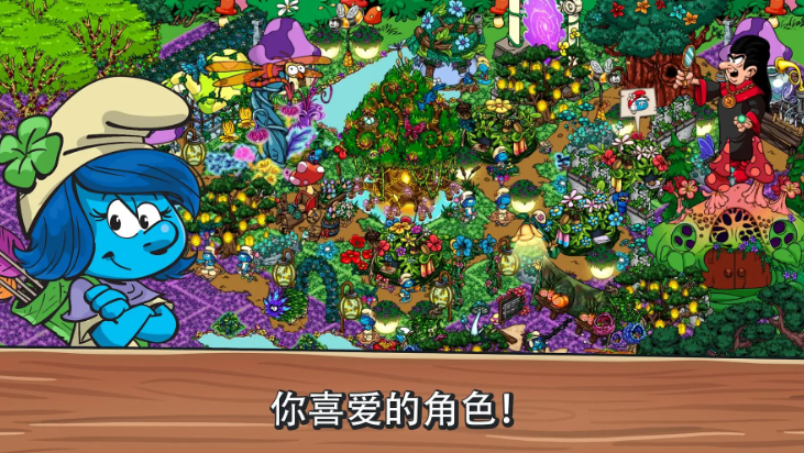 3. 多元化的角色互动:招募懒惰蓝精灵、蓝妹妹等角色,根据技能分配工作(如种植、养殖),提升生产效率。