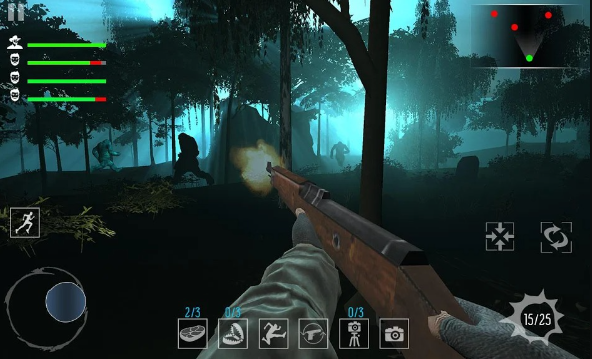 - 拍摄/对抗阶段:遭遇大脚怪后启动实时操作,镜头稳定性与构图影响照片评级(SS级解锁特殊图鉴);或直接使用武器(霰弹枪、陷阱)对抗。