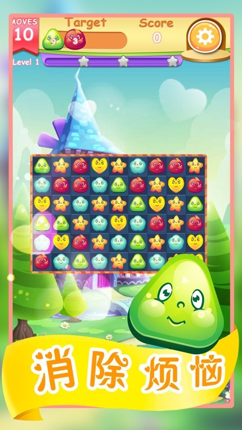 突破传统三消位置限制,玩家可通过摆动设备或滑动屏幕改变果冻位置,实现“空中组合消除”。例如,在“拯救公主”关卡中,需利用重力让果冻滚落至底部触发机关。