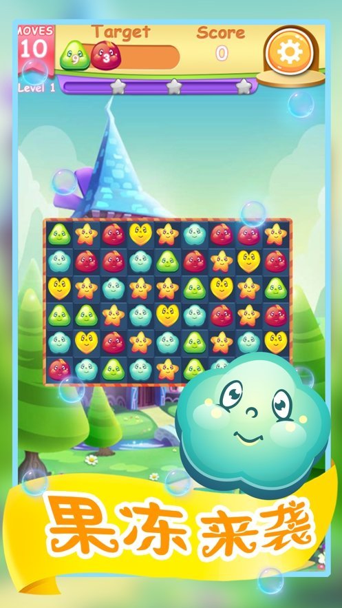 采用2D卡通渲染,果冻半透明质感与弹性动画结合朦胧蓝色背景,营造梦幻氛围。消除音效清脆悦耳,BGM随关卡主题变化(如“魔法森林”主题配轻快钢琴曲)。