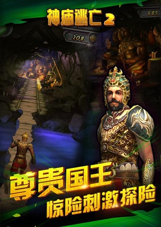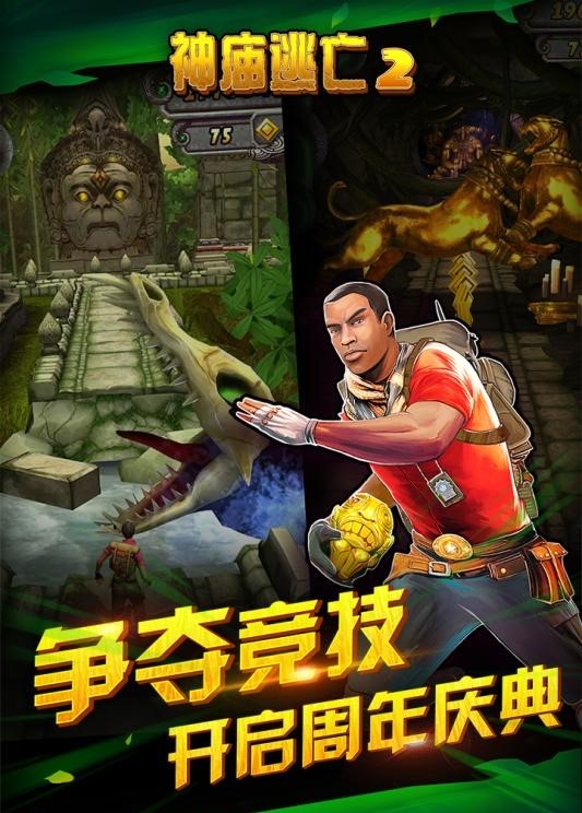 《神庙逃亡2》(Temple Run 2)是由Imangi Studios LLC开发、乐逗游戏代理发行的3D写实风格跑酷类手游。游戏以“无尽逃亡”为核心玩法,玩家操控角色在神庙、丛林、悬崖等多样化场景中躲避障碍、收集金币,同时逃离恶魔守卫的追击。作为经典跑酷IP的续作,游戏凭借精美的画面、丰富的角色系统与持续更新的内容,成为全球下载量超5亿次的热门手游,并曾入选中国IP价值榜游戏类前十。