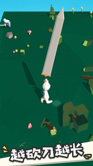 1. 移动与攻击:按住屏幕滑动控制角色移动,接触可砍伐目标(树木、石头、敌人)时自动挥刀,刀长随击杀/砍伐量增加。