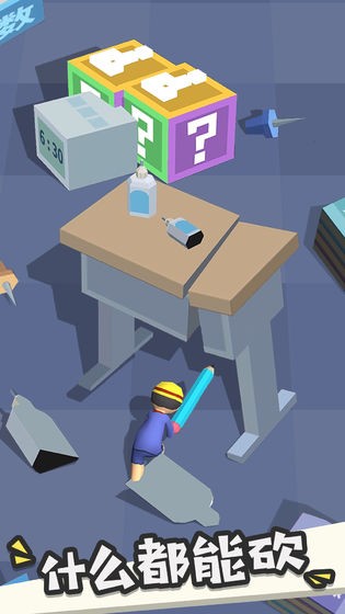玩家化身持刀角色,在缩圈战场中通过“砍树、砍人、砍场景”积累武器长度。刀长增加后攻击范围扩大,但攻速与移速显著下降,需平衡进攻与防御策略。游戏提供森林、沙漠等多样场景,角色皮肤包含“职场马屁精”“网络键盘侠”等15种搞怪形象,武器可升级为斧头、雨伞等奇葩形态。2分钟限时内,存活且刀长最长的玩家获胜,魔性对战充满戏剧性。