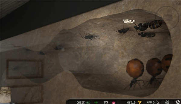 - 基础资源收集:控制蚂蚁外出寻找食物(如昆虫尸体、植物果实),同时挖掘地下土壤扩建巢穴。