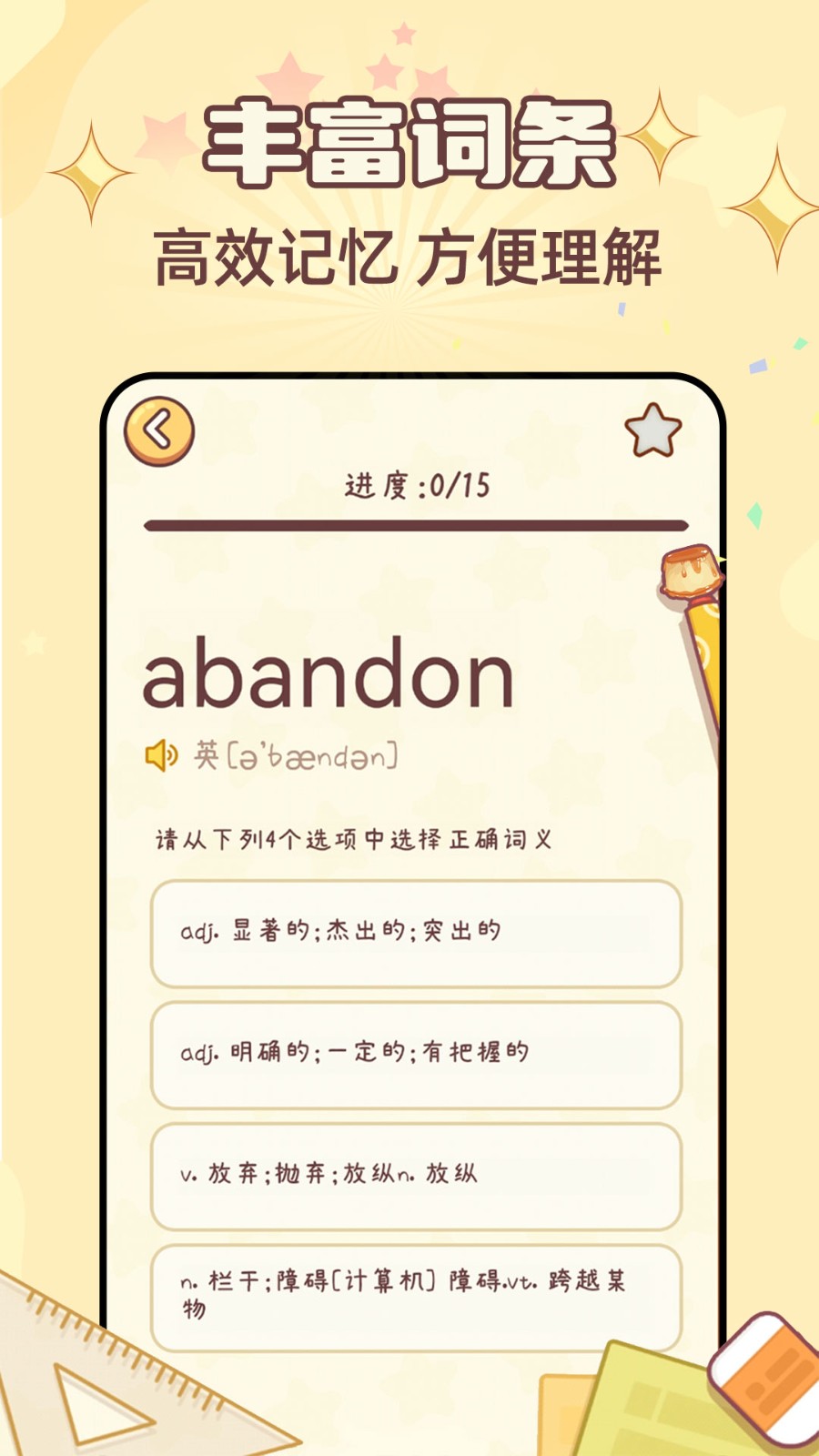 布丁单词是一款专为语言学习者设计的单词学习与记忆软件,旨在通过科学的方法帮助用户高效掌握大量单词。它采用互动式学习模式,结合游戏化元素,使学习过程既有趣又高效。