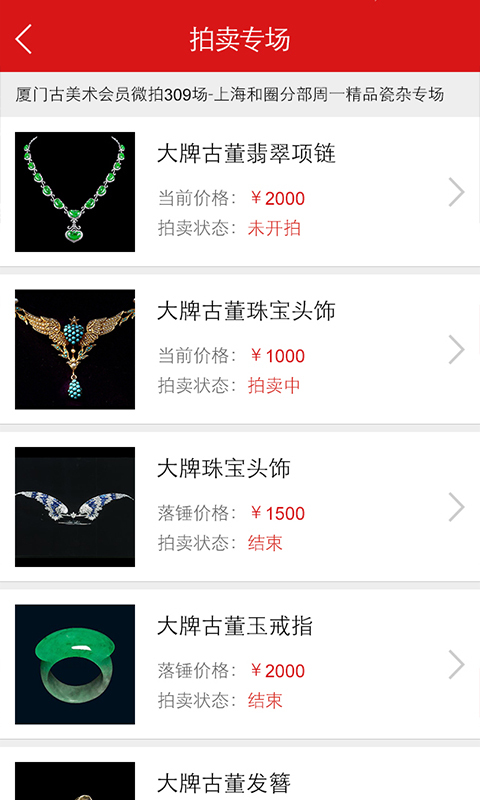 6.拍卖专场:每日上线多个专场、各类产品供您选择,提供加一手、委托出价等便捷竞价方式