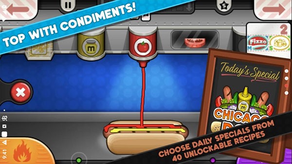 《老爹热狗店ToGo高清版》是一款模拟经营类游戏,由Flipline Studios开发并发行。玩家将扮演老爹热狗店的老板,通过制作美味的热狗、薯条、饮料等美食,满足顾客的需求,经营并发展自己的热狗店。