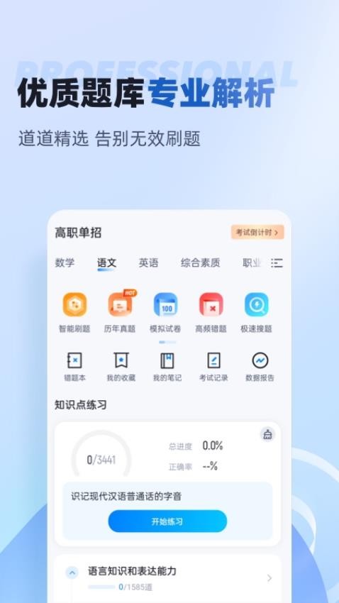 职教高考题库App是一款专为职业教育和高考考生设计在线题库应用,旨在帮助用户通过高效便捷的方式复习和备考,提高考试成绩。该应用涵盖了各个学科的专业知识,提供海量习题、模拟试题、历年真题及解析,以及个性化的学习计划和进度跟踪功能。