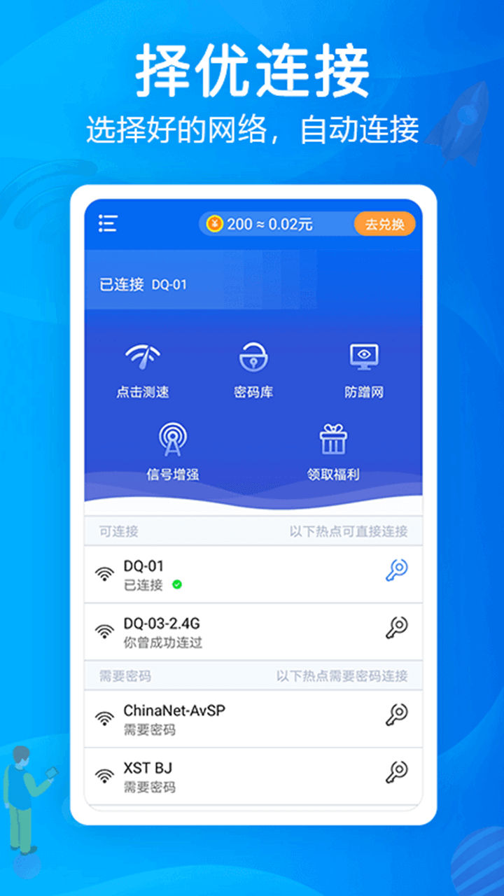 WiFi得宝是一款专为提升用户无线网络体验而设计的智能连接与管理工具。它集成了强大的信号增强、安全优化、设备管理以及便捷的网络分享功能,旨在为用户提供高效、安全、便捷的Wi-Fi解决方案。