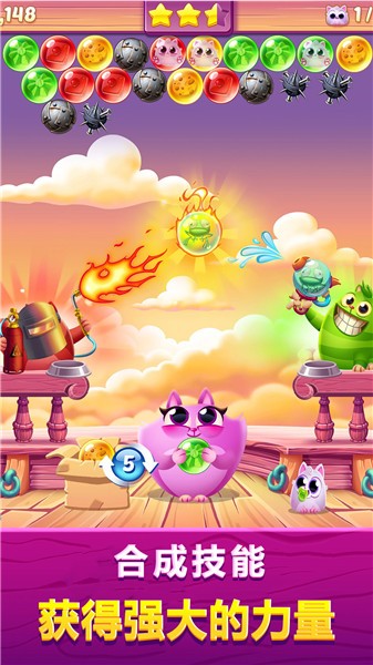4. 丰富的道具系统:游戏中提供各种功能的道具,如炸弹、变色泡泡等,帮助玩家轻松过关,增加游戏的趣味性和挑战性。