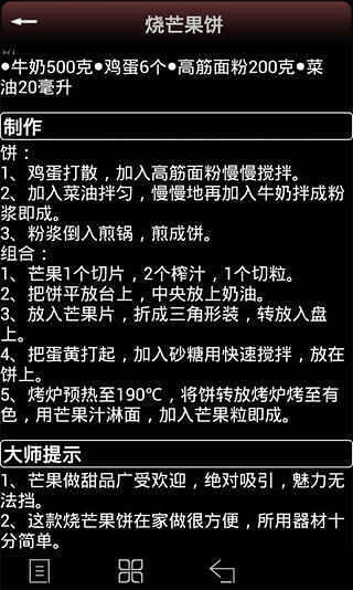 - 食材数据库:收录各种甜品所需原料的详细信息,包括营养成分、选购建议及替代方案。