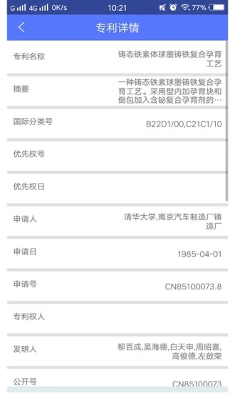 专利查询App是一款专为科研人员、企业知识产权管理人员以及广大公众设计的专利检索工具。它集成了全球多个权威专利数据库,为用户提供快速、准确、全面的专利信息检索服务。
