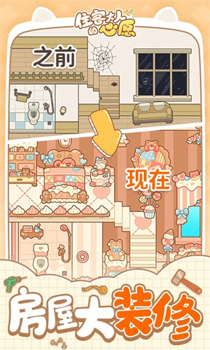 1. 房间设计与装修:提供多种风格的房间装修方案,玩家可以根据住客喜好进行个性化设计。