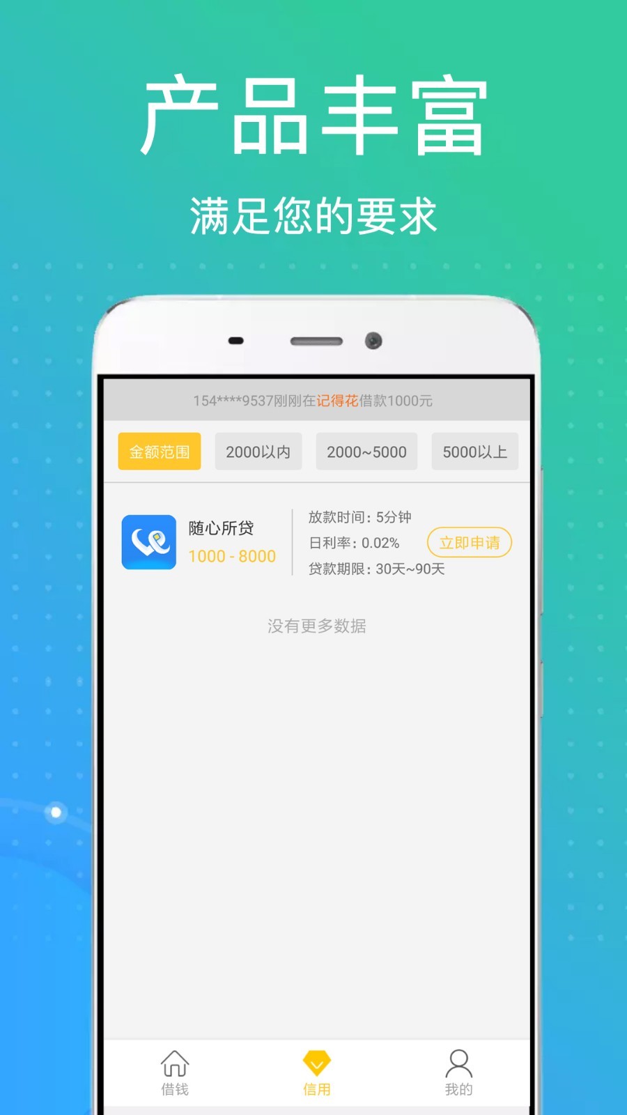 额度多样,初次借款授信额度高,借款额度越借越高