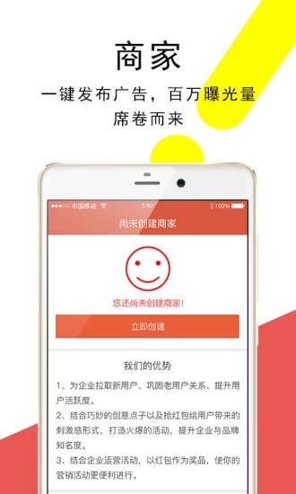 用户一键分享商家的文章到微信朋友圈、新浪微博等社交平台,即可马上参与抢红包。