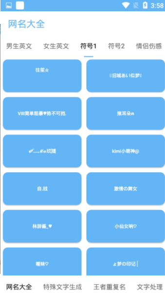 4.让你可以找到合眼缘的特殊文字符号的网名,让你在游戏、社交场景中表达自己!