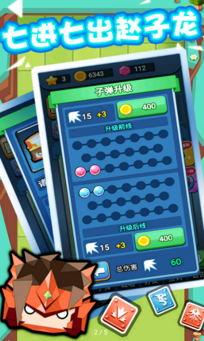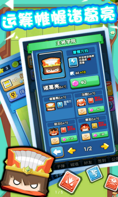 英雄培养系统:玩家需要玩到对应的等级关卡才会开启不同类型的英雄,既有智勇双全的诸葛亮,又有骁勇善战的战神吕布等待着你来开启。