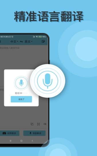 1、语言直译:讲话实时翻译,支持英文翻译成中文,点击翻译按钮后即可翻译