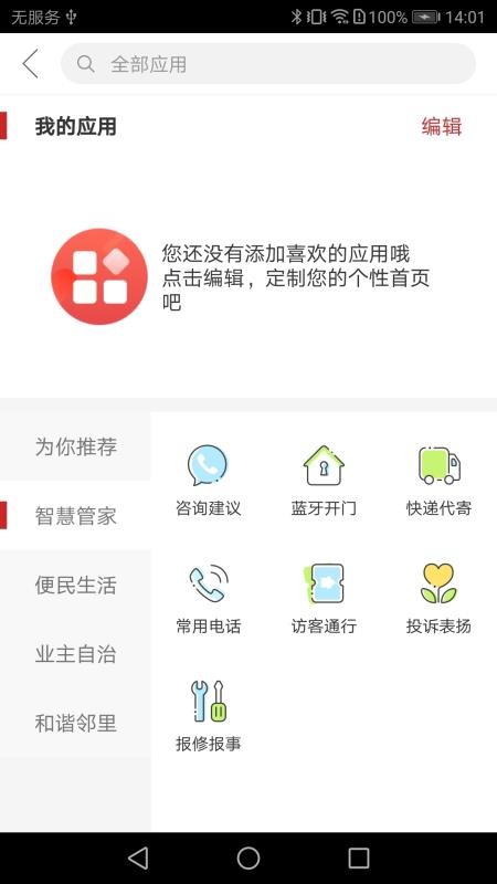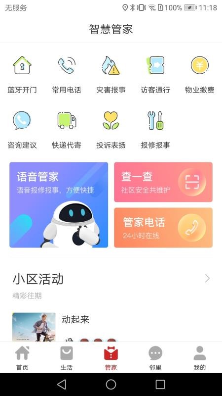 进入管家板块中,常用电话、蓝牙开门、咨询建议、快递代购等服务都有;