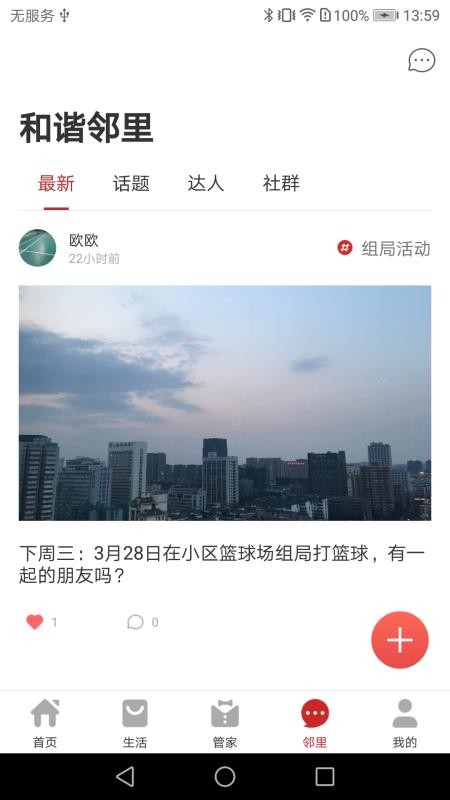 在邻里圈中可以与其他居民用户交流互动,线上参与话题互动。