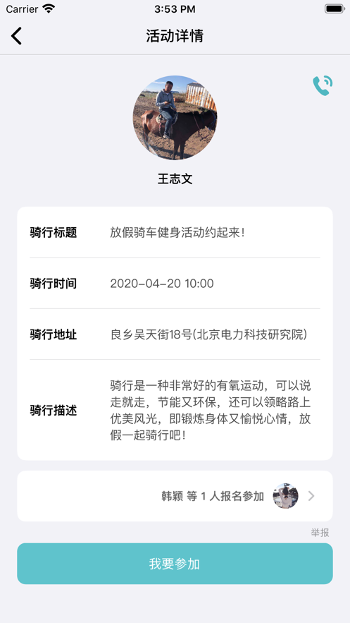 1、平台上线超多安全靠谱的骑行活动,用户可以在手机上查看详情并点击参与;