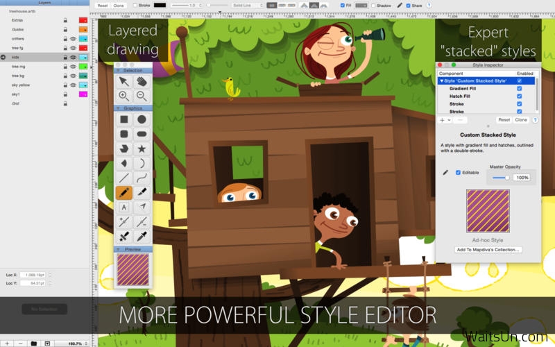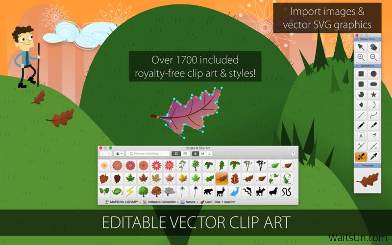 Artboard是一款使用非常方便又实用的Mac OS平台矢量绘图工具。Artboard拥有个性丰富的画板界面,内置超过1700多种绚丽风格和可编辑的矢量剪贴画,可进行商标、海报、平面图、技术图纸、Web图形、时装等等项目设计。