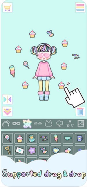 2.提供了拖放UI,可以自由放置衣物和物品。 使用删除功能,会使得游戏跟传统的装扮游戏有很大的不同。