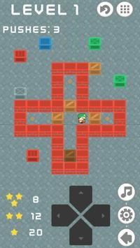 1、你只需点击屏幕上的虚拟按钮,即可操控人物完成推动箱子的动作;