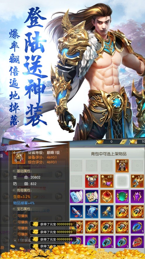 1、上线就送宠物进阶丹,还有护花令,不仅这样还有铜钱100万,真的是很大方了。