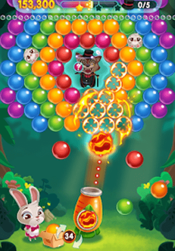 1、基础玩法为:发射浣熊手中的泡泡,如果想同颜色的泡泡想连接,泡泡就会被消除;