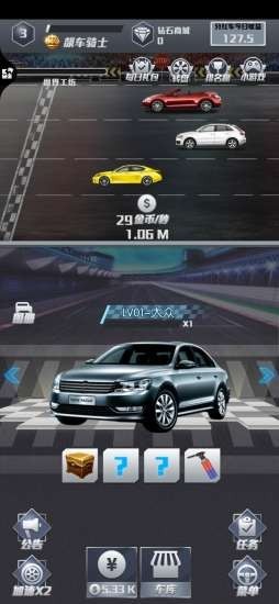 1、基本任务:用户通过关卡收集汽车碎片,集齐碎片即可解锁对应的汽车,汽车等级越高,收益越高