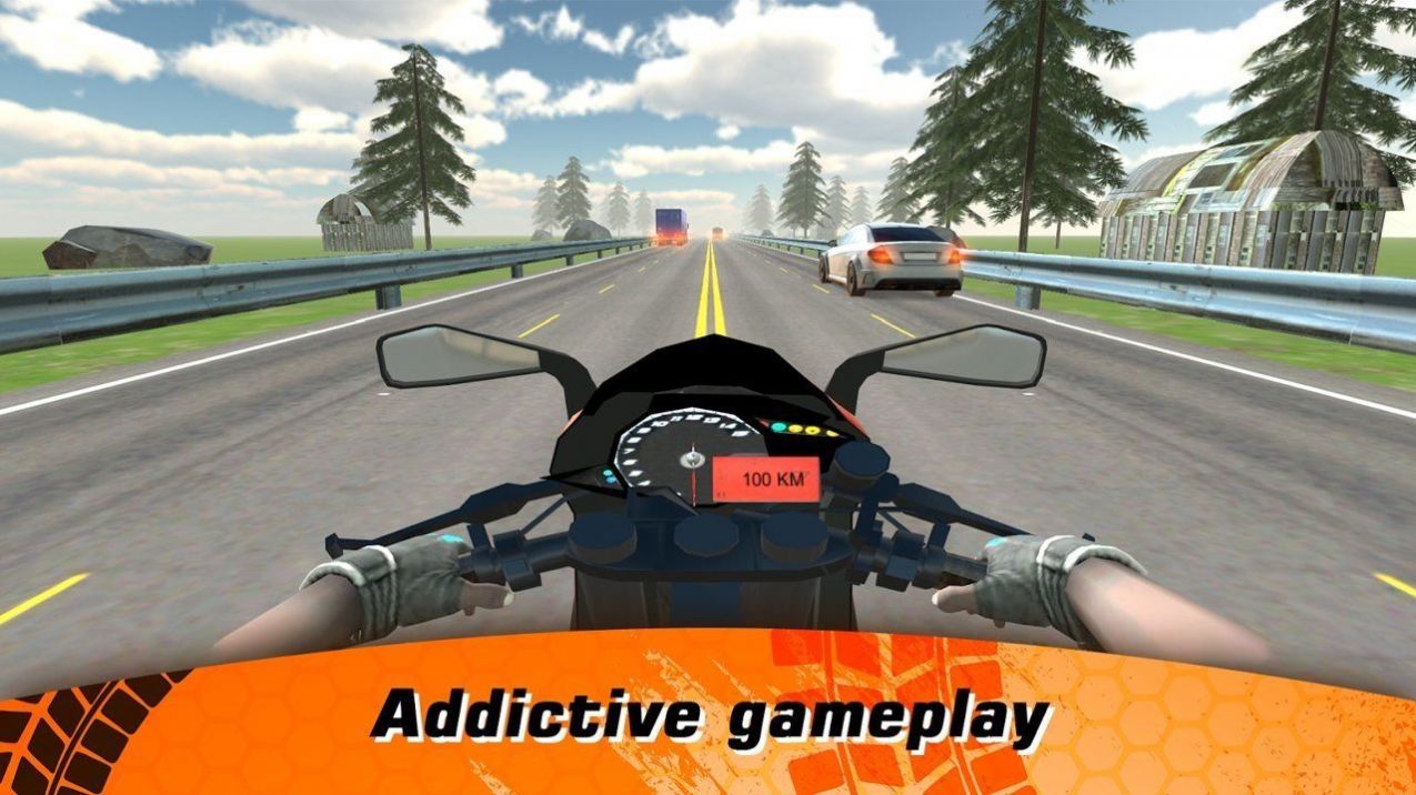 1.一种全新的模拟摩托车赛车游戏,玩家可以控制摩托车,在道路上行驶,不断加速超越其他车辆,并体验驾驶的快感。