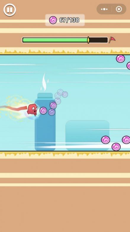 1、画面比较的简单,每关上的豆子总量都是一定的,小心各种障碍物不要让自己掉血;