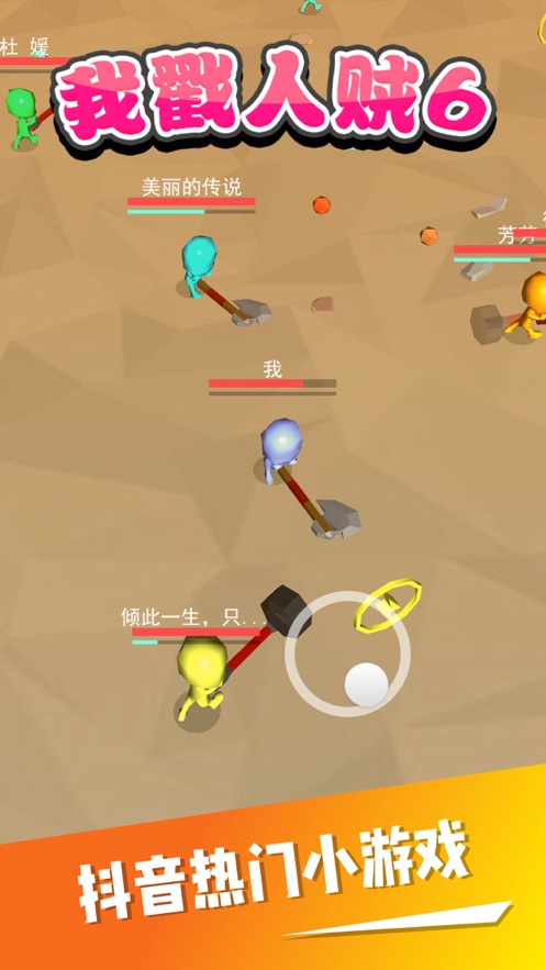 《我戳人贼6》是一款多人竞技对战大乱斗游戏,玩家进入游戏可以看到超多场景, 每个场景都是随机刷新的,加入战场与其他玩家一同对战,在时间结束前顺利的击败敌人即可获得奖励!获得第一还可以解锁皮肤碎片,从而兑换超多皮肤和道具使用,感兴趣的快来体验下吧!整体游戏玩法欢乐,还有轻松的音乐!绚丽的武器有特殊的效果,可以增加0.5米的杀伤范围。玩家如果有绚丽武器,可以更轻松的对抗敌人,先一步斩杀敌人。