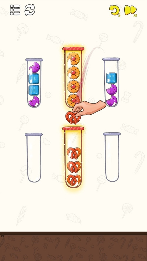 1、尽可能少地移动相同的颜色到同一管,随着曲奇变得更加丰富多彩;