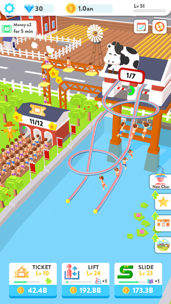 一款清新风格的模拟经营游戏,游戏中玩家将经营一座水上乐园,夏日炎炎,正是水上乐园经营的好日子,玩家可以设计各种设施和摆放的位置,吸引游客前来游玩,获得更多的金币,然后建造更好玩的水上乐园,作为一个优秀的游乐场管理者,可以给你的游乐场定一个主题,围绕着你的主题开展活动,吸引游客们前来游玩,同时还需要对你的游乐场进行改进,为游客制造更多的快乐。赶快下载体验吧!