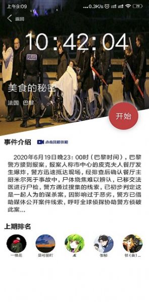 美食的秘密案件这是一款侦探冒险类手机游戏,这款游戏玩法非常的棒哦,并且现阶段在网络上也是非常的火爆的呢,玩家在游戏中化身名优秀侦探高手,就连警方破不了的案子你都可以哦,游戏非常考验玩家们逻辑思维,学会分析判断嫌疑人口供也是很重要的,喜欢的话快来下载吧!在这个充满悬疑故事剧情中找到凶手,每一个情节都是真实存在的,我们需要协助警察来开始调查整个案件的真相,为死者讨还公道。提高玩家的判断推理能力,提升你的思维想象,根据仅有的线索来开始游戏吧!更多好玩的案件等你来查找,证据由你亲自搜集。