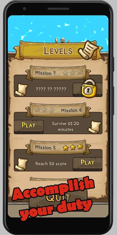 3、在入侵者到达王国之前将他们全部摧毁,解锁新的生存模式,完成所有的任务,展示你的头脑以及力量。