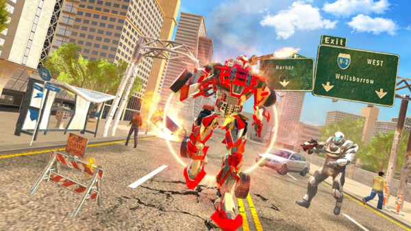 3、掌握机器人的战斗技巧,享受先进武器的冲击波,在混乱的城市抓敌人。